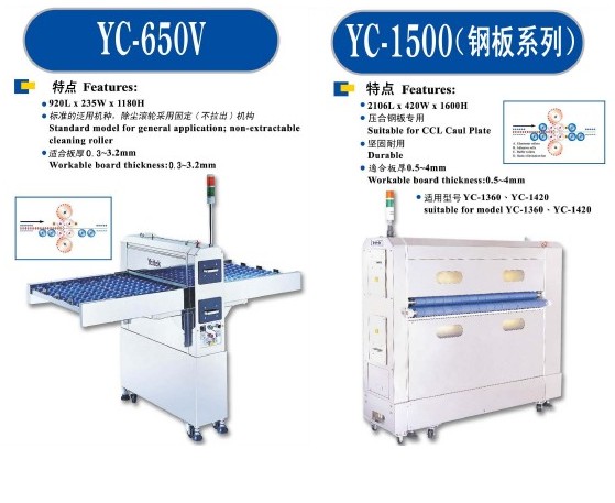 台湾义仓板面除尘清洁机 (Yeitek Clean Machine)多种规格的在线与离线清洁机配合不同工序来完成板面的清洁工作。一、普通型 -适合板厚0.3mm~3.2mm。如YC-650-4S等