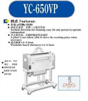 机器设计特点·上、下粘尘纸卷工作状态下可抽取·硅胶粘尘滚轮工作状态下可抽取·机身停机时可抽取·不同硬度的除尘硅胶滚轮配合不同厚度的板·除尘滚轮、除尘粘纸卷压力可调·传送速度可调·垂直清洁,不占空间,可随时移动(仅限垂直型清洁机)